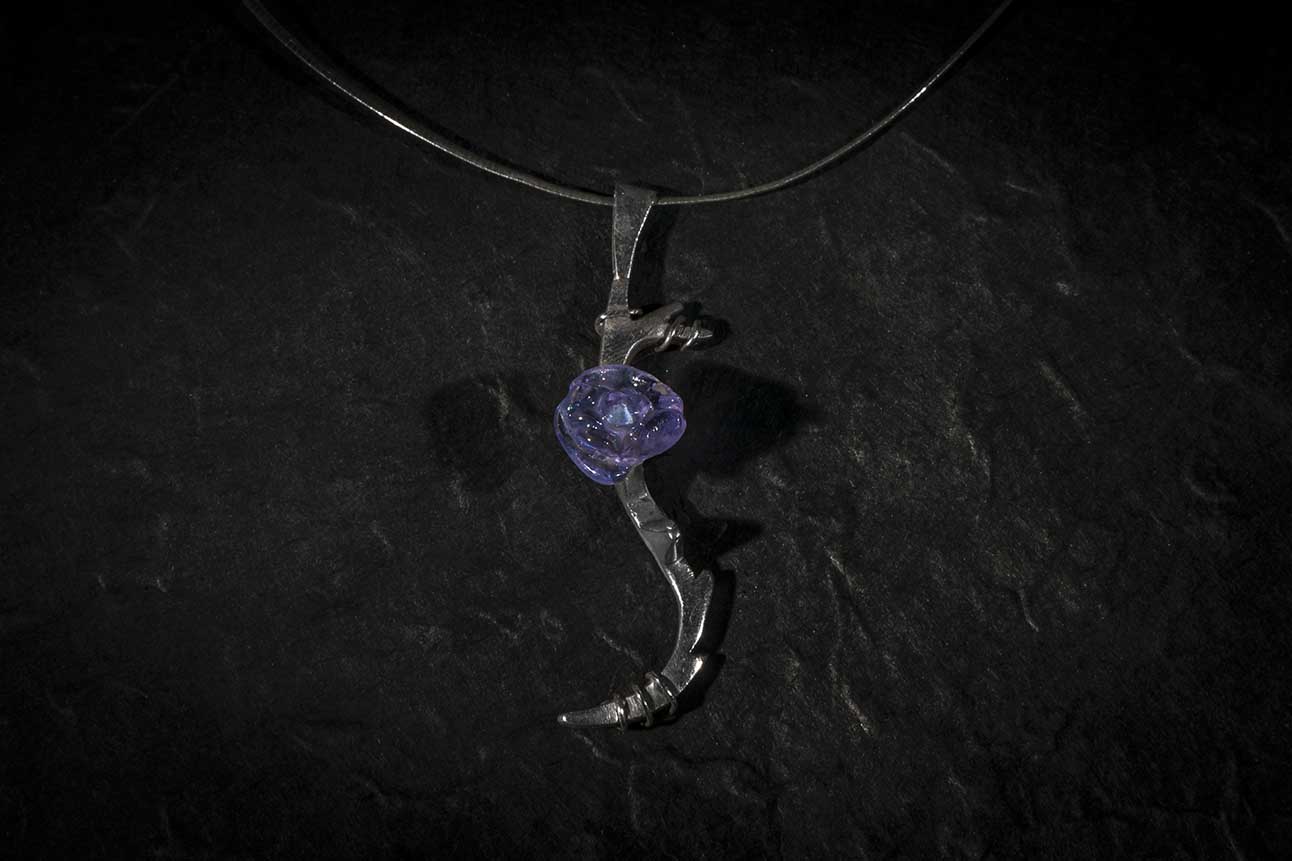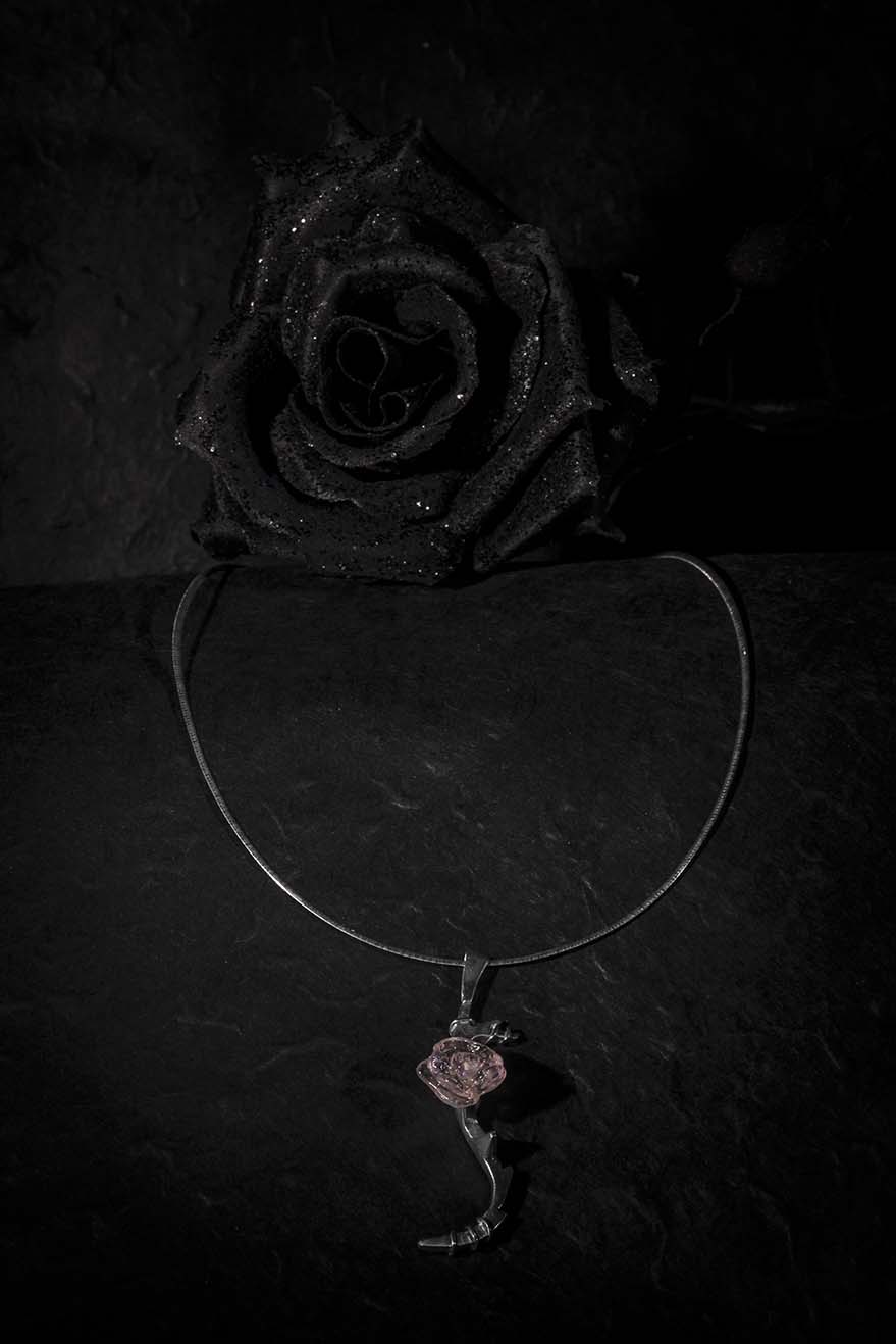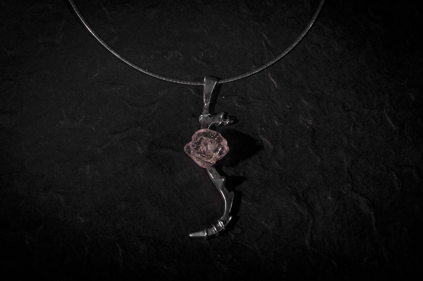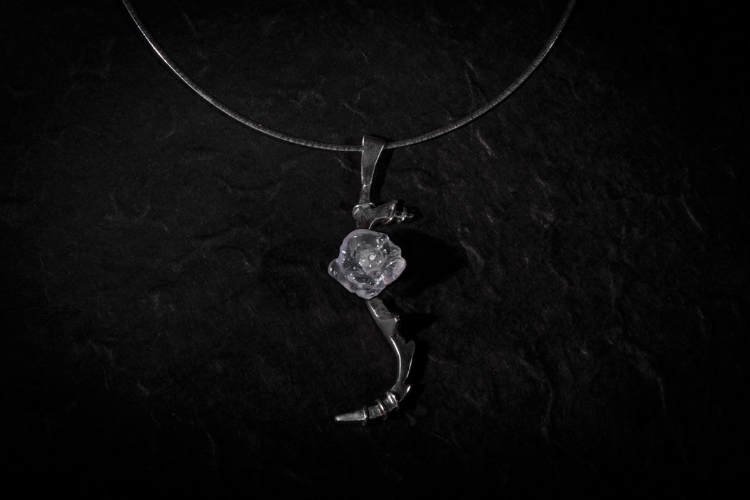 Collier "Tabula" Argent 925/1000 - rose en pâte de cristal (les couleurs lilas et violet sont des couleurs dichroïques, qui deviennent bleu à la lumière blanche).