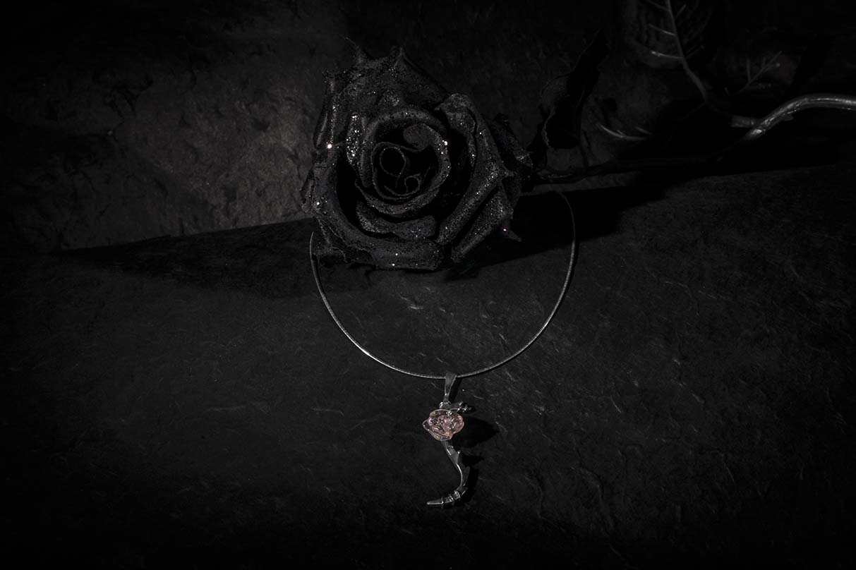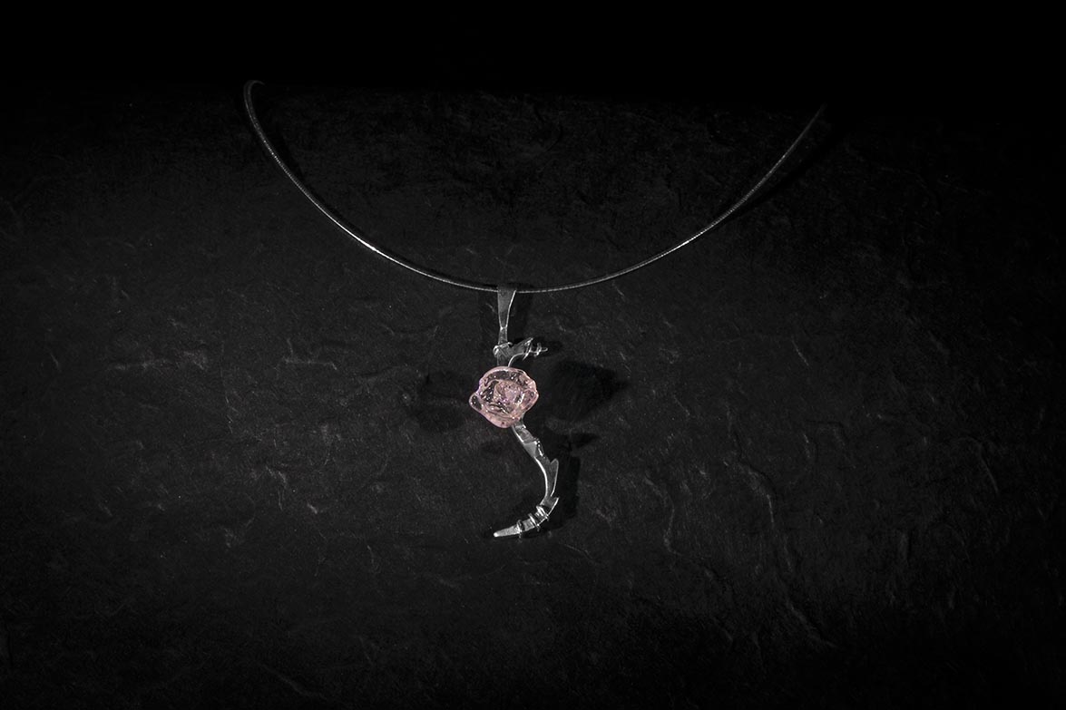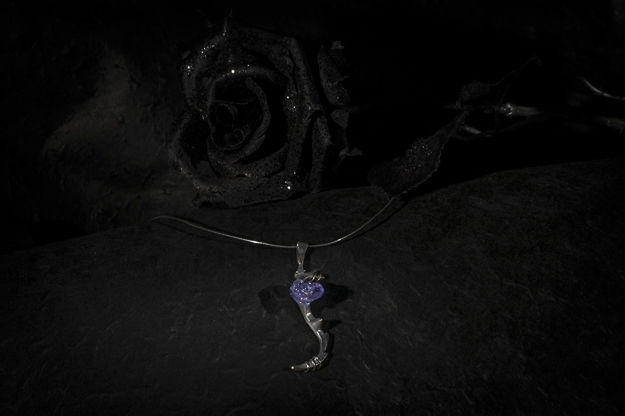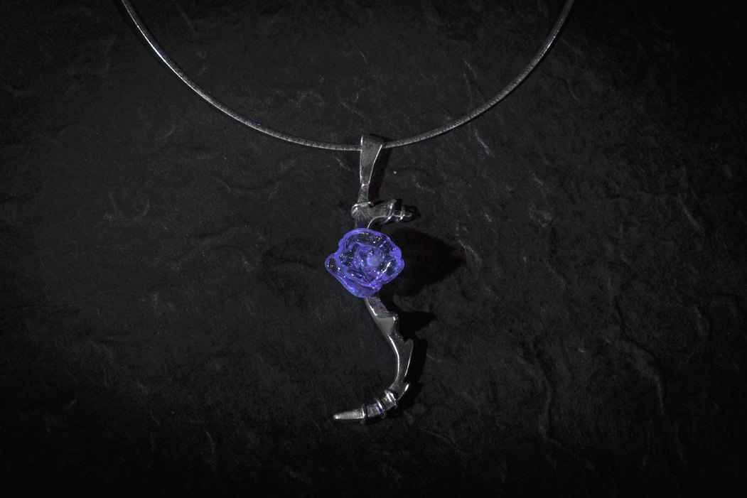 Collier "Tabula" Argent 925/1000 - rose en pâte de cristal (les couleurs lilas et violet sont des couleurs dichroïques, qui deviennent bleu à la lumière blanche).