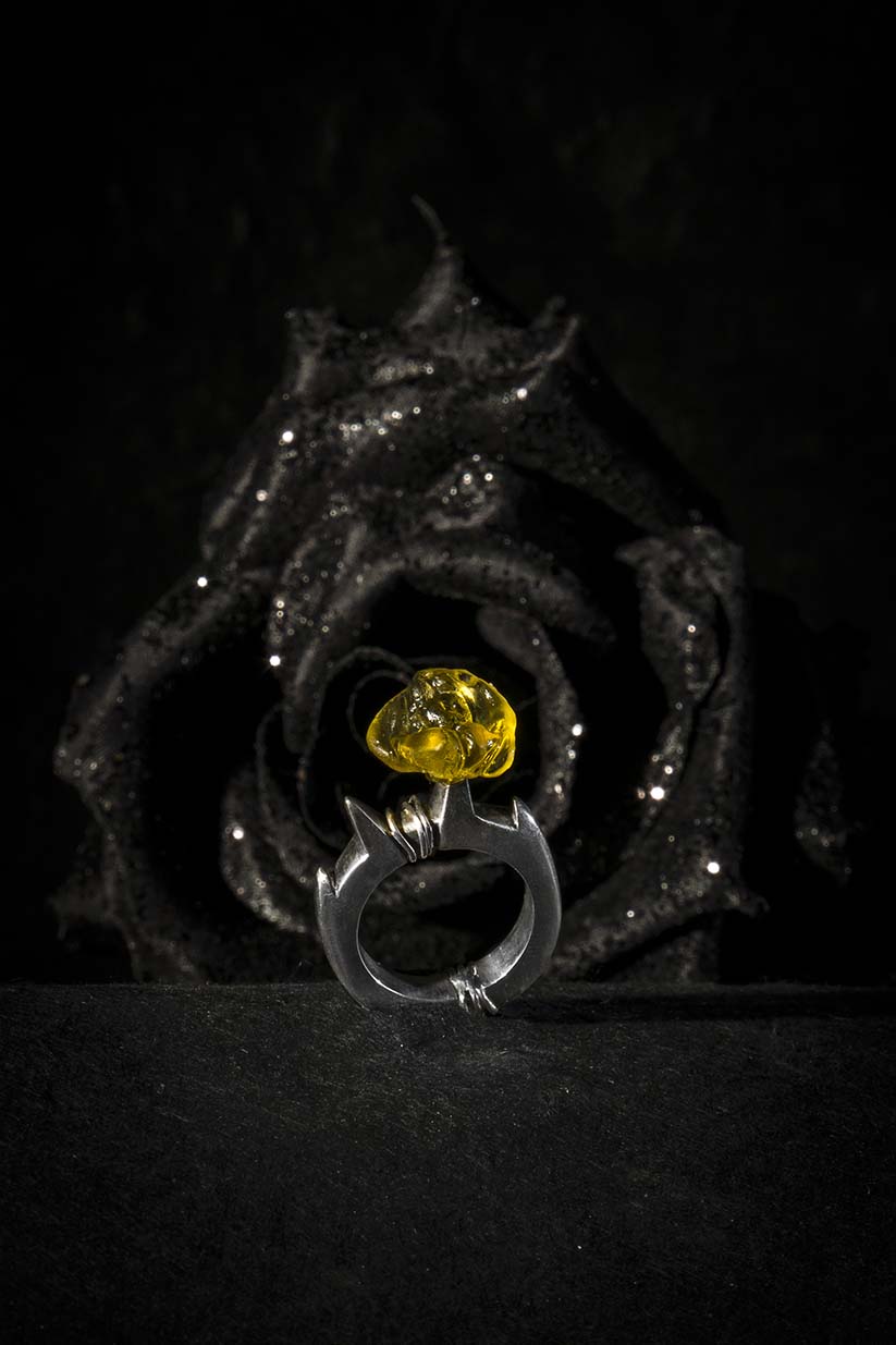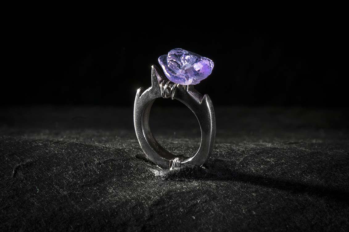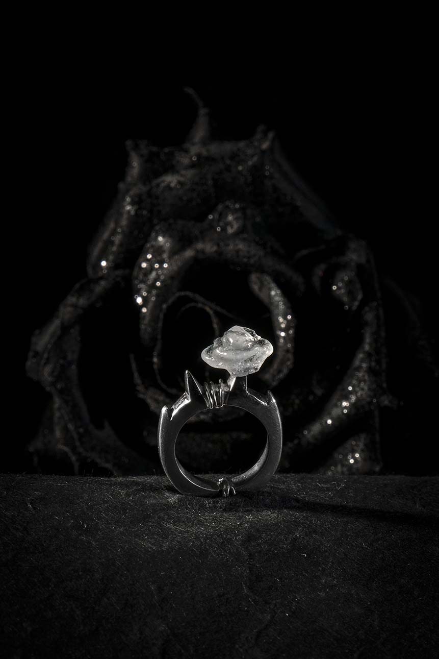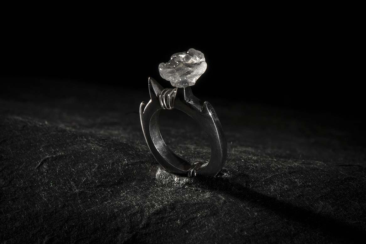 Lù Batailles se joue des matières à en brusquer l'idéal. Elle crée une littérature d'argent et de cristal. De mille bagues inspirant le feu et le Graal. Le symbole est déroutant. Selon l'artiste, la beauté se sublime de contraire.